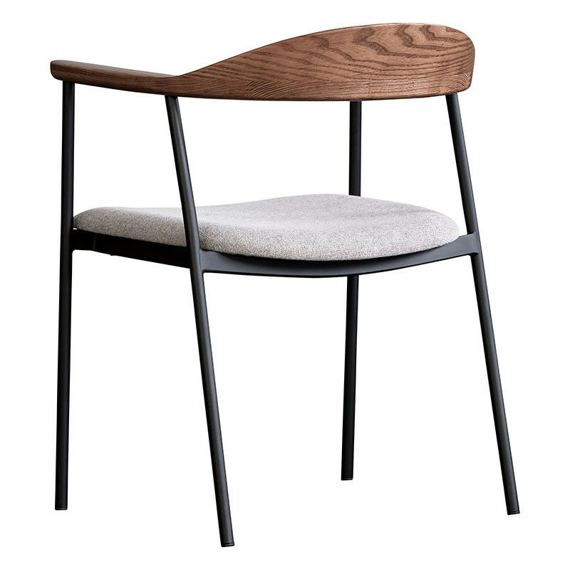 背もたれ部分の湾曲が背中に沿うのでホールド感をアップしてくれます。しっかりした肘かけがあり、自然と腕を置きたくなるように設計されています。ダイニングで心地よく過ごすのにぴったりです。