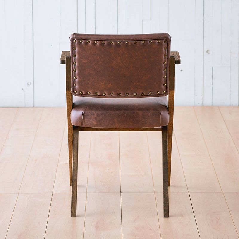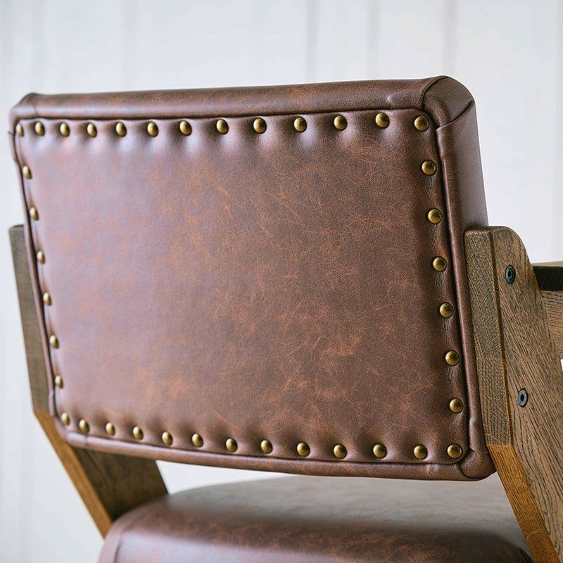 背もたれの背面には鋲が配されています。光沢が抑えられたゴールドの鋲は、インダストリアルな雰囲気をかもし出す、程よいアクセントになっています。