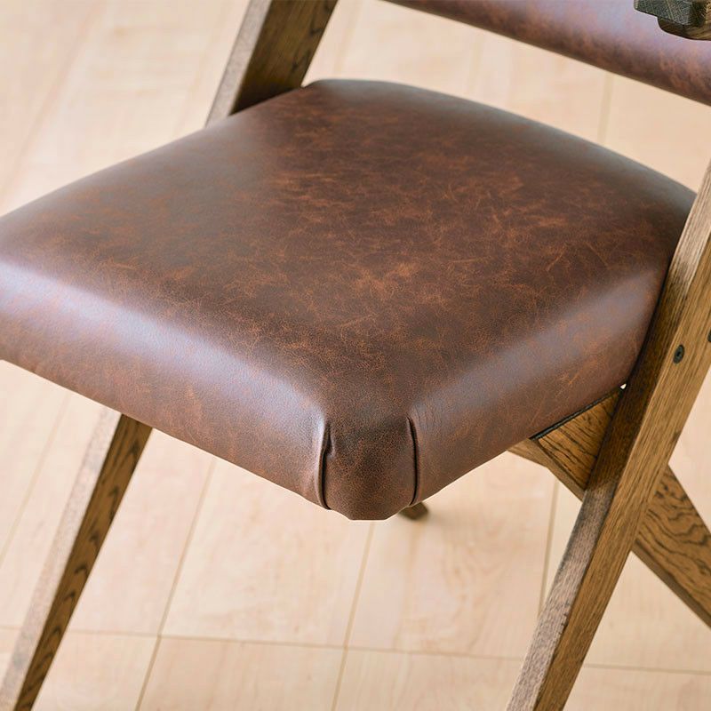 オーク材にダークな色のオイルで仕上げています。 張地は、リサイクルレザーを使用しています。革の風合いを感じさせながら、 通気性に優れ、一年を通して使用できる新素材です。