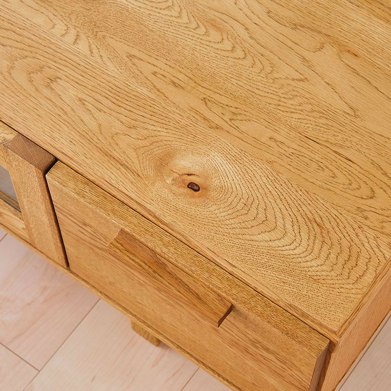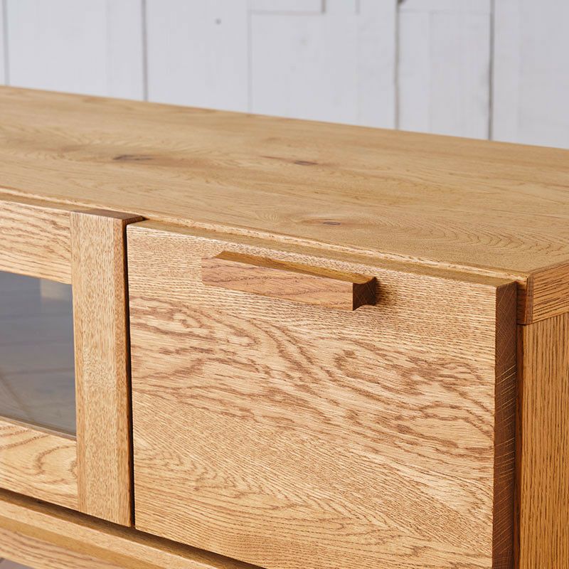 天板や戸板など、要所には無垢材を使用しています。オイルで仕上げているので時間とともに経年変化が表れ、唯一無二の風合いに育てていくことができるのもこのTVボードの魅力です。