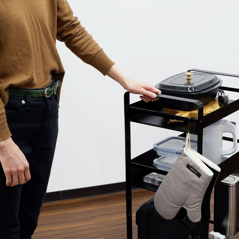 中段は収納する物のサイズに合わせて、3段階の高さ調節が可能です。