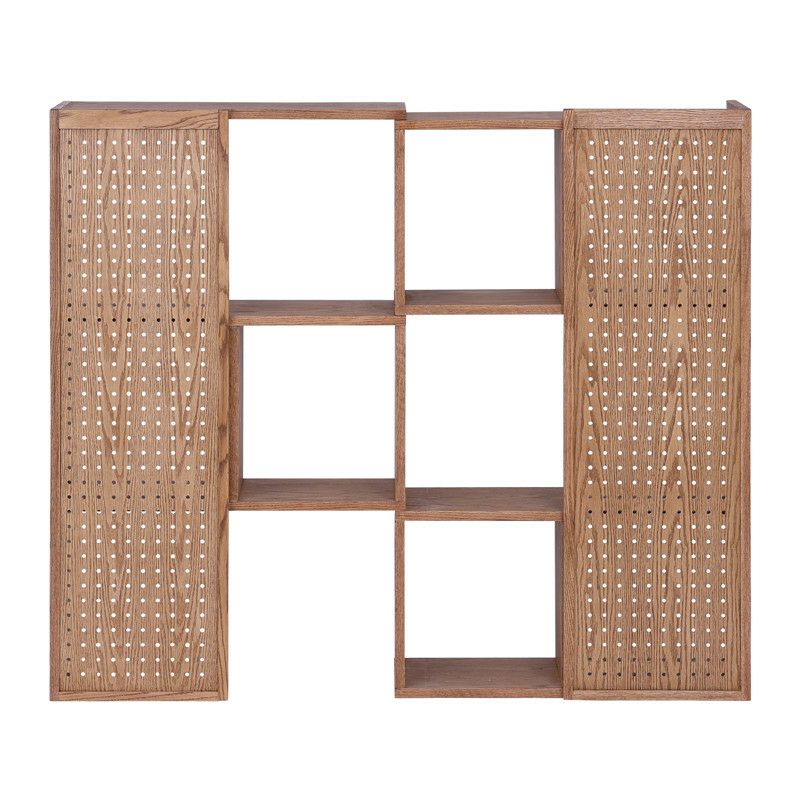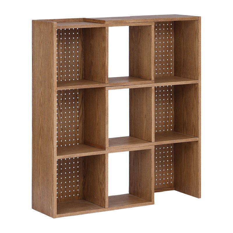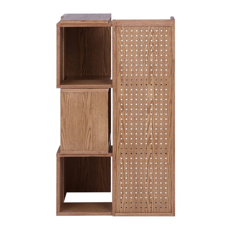 背面は有孔ボード仕上げです。奥行き約31cmとスリムなので、コンパクトな部屋の間仕切り収納としても活躍します。背面の有孔ボードにフックをかけてディスプレイも楽しめます。