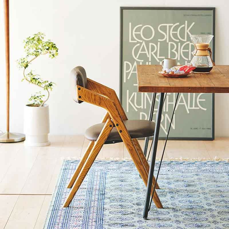 折りたためるダイニングチェア「butler(バトラー)」です。2色の張地から選べます。