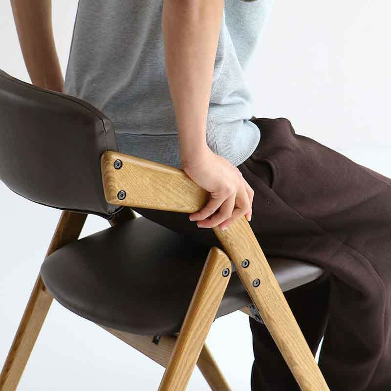 着席時にはちょっとした肘掛けに、立ち上がる時も体重を支えてくれます。