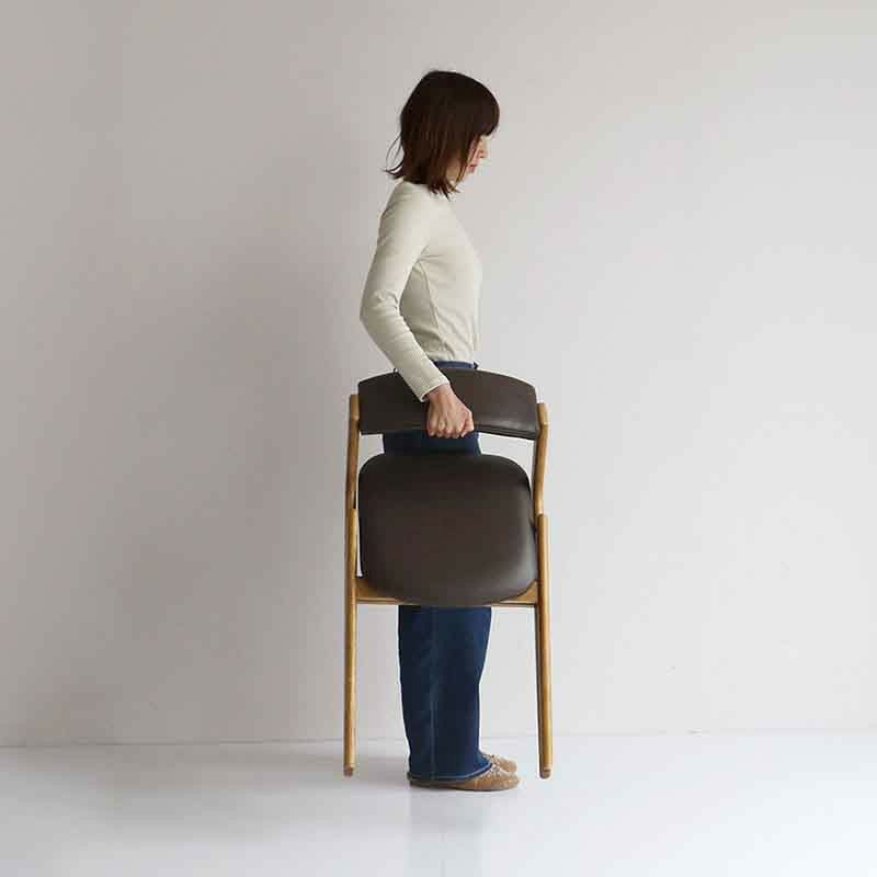 折りたたみ式で、気軽に持ち運べるチェアです。来客時やワークスペースのチェアとしてもピッタリです。折りたたむと僅か19.5cmに!使用しない時はスキマ収納が可能です。