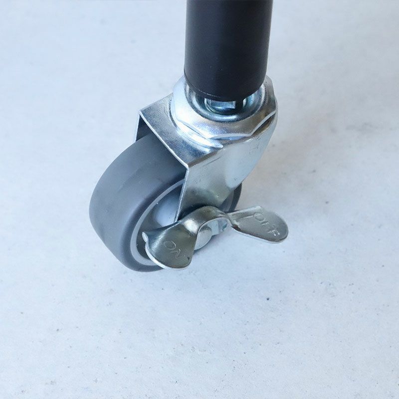 3点支柱のうち、2点にキャスターが付いています。キャスターがついていない支柱を持ち上げて簡単に移動させることができます。