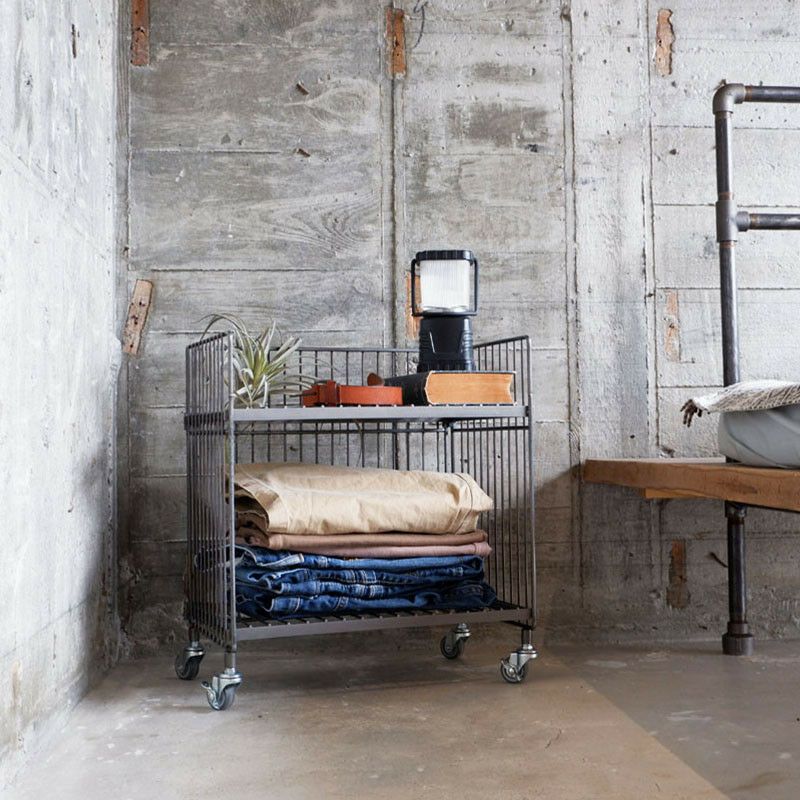 インダストリアルデザインのワイヤーワゴンです。<幅/レギュラー 棚/シングル>のページです。