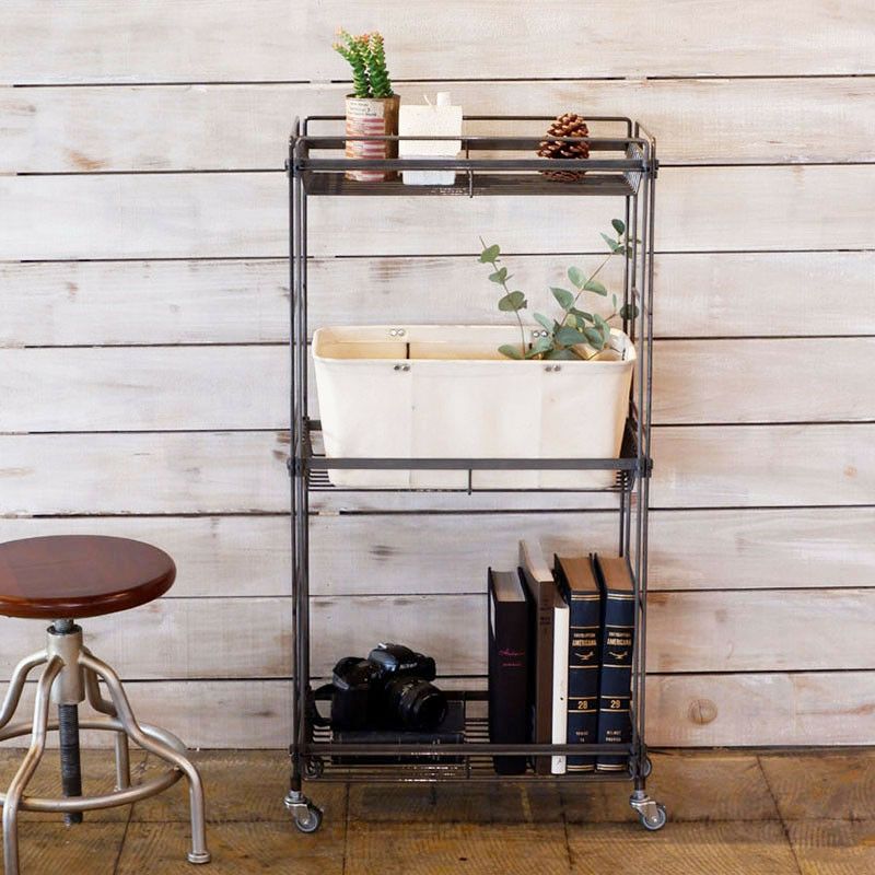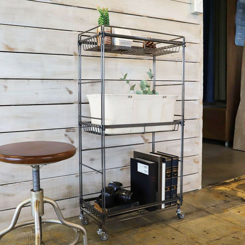 アイアン素材で作ったインダストリアルデザインのワイヤーシェルフです。キャスターが付いているので移動も簡単にできます。