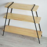 無骨なアイアンの脚とウッド天板の組み合わせでできた3段ラックです。2色から選べます。