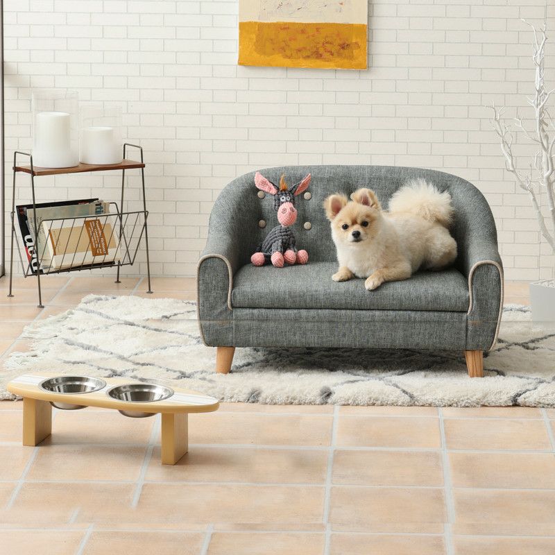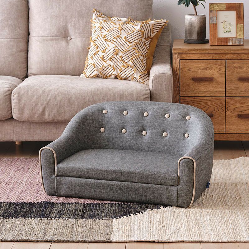 丸みのあるフォルムとテーパー脚が可愛らしく、優しい印象のソファです。いかにもペット用という雰囲気ではなく、インテリアにも馴染みやすい洗練されたデザインが特徴です。