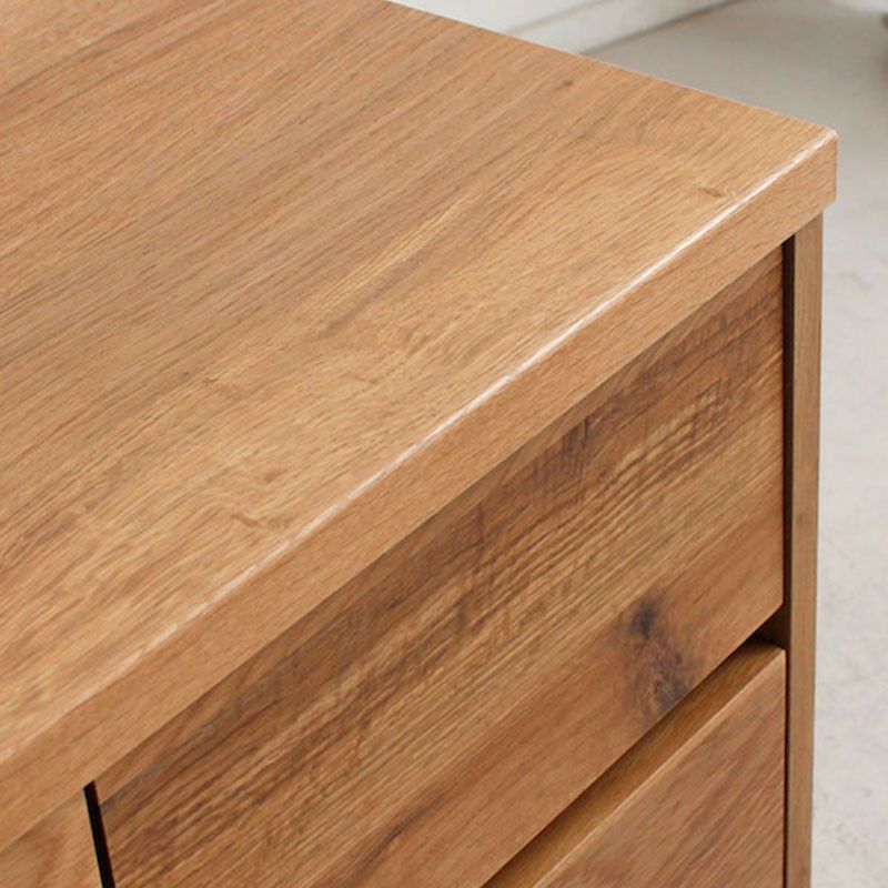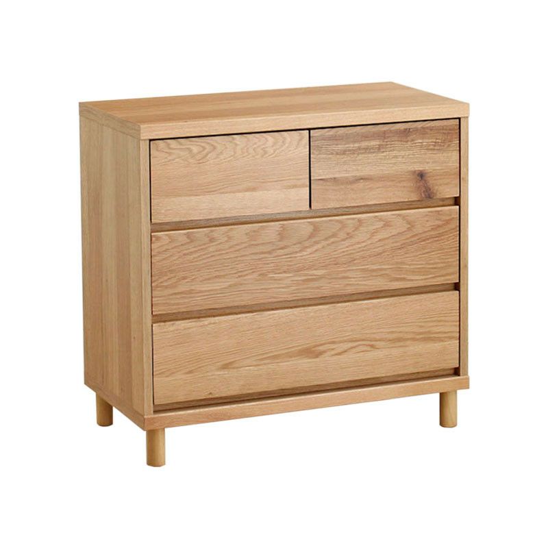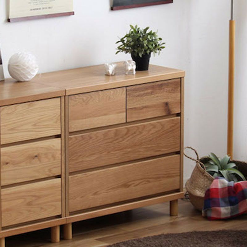 引き出し前板、天板にオーク無垢材を使用しています。無垢材ならではの木目や手触りを味わることができる優しい家具です。デザインは極力シンプルにすることで使う場所やコーディネートを気にすることなくお使いいただけます。