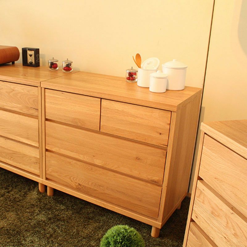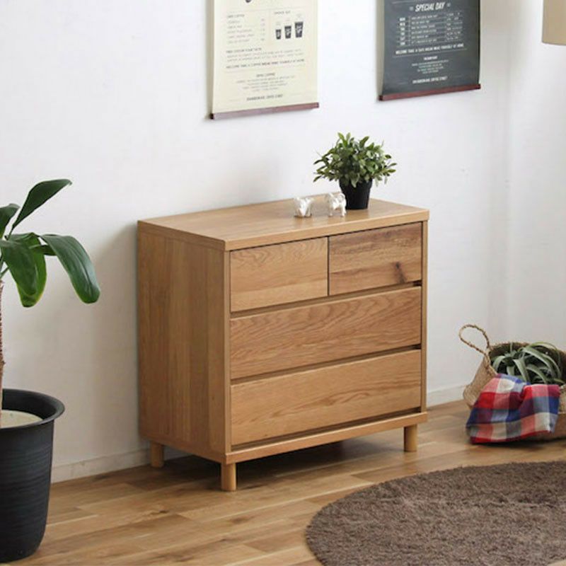 引き出し前板、天板にオーク無垢材を使用しています。無垢材ならではの木目や手触りを味わることができる優しい家具です。デザインは極力シンプルにすることで使う場所やコーディネートを気にすることなくお使いいただけます。