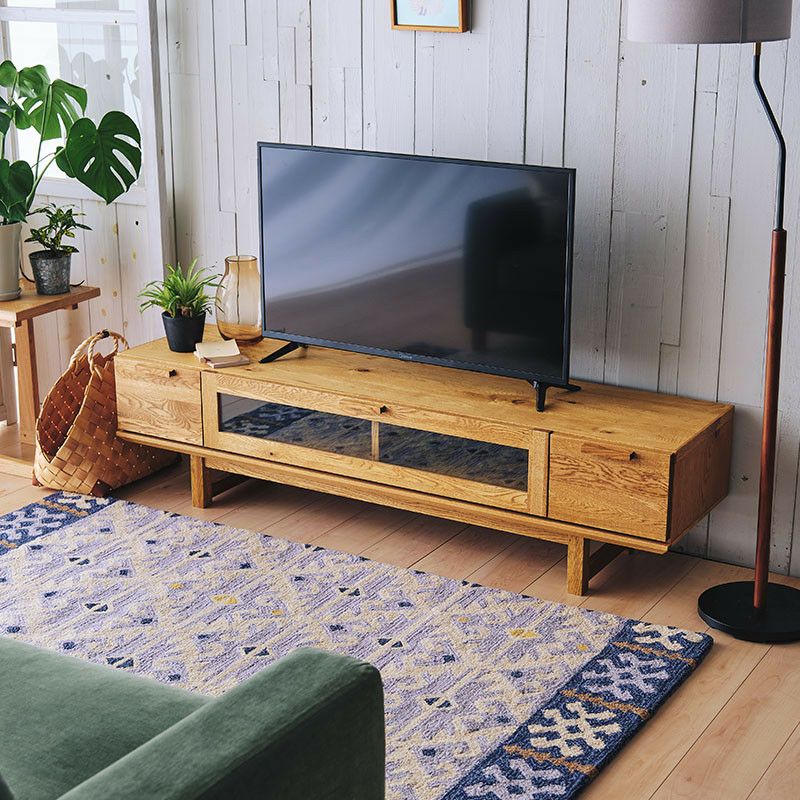 全身から木のぬくもりが伝わってくるようなナチュラルなTVボードです。素材感を生かすため、デザインは極力シンプルに仕上げてあります。あえて角を残したデザインにしてあるので、ナチュラル素材でも甘くなりすぎず、北欧テイストのインテリアにもよく合います。