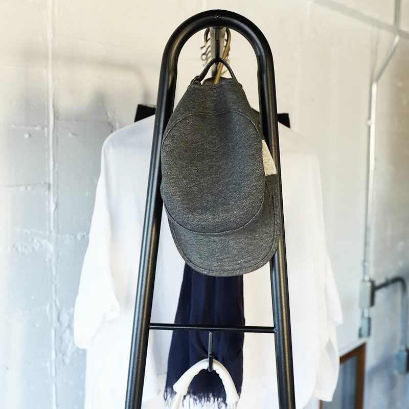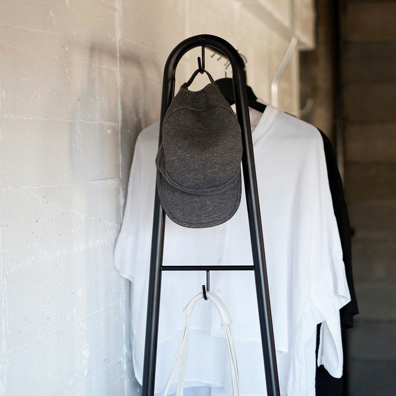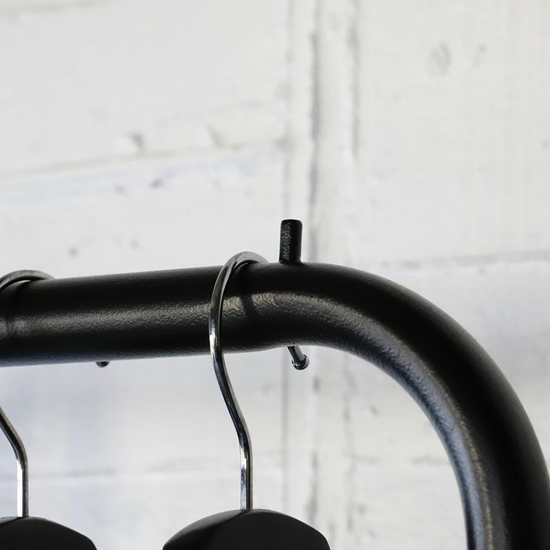 片側のサイドにフックが2箇所付いています。帽子やバッグをかけるのに便利なのはもちろん、トップスとボトムスを別々にかけて、アパレルショップのようなコーディネートスペースを作ることもできます。