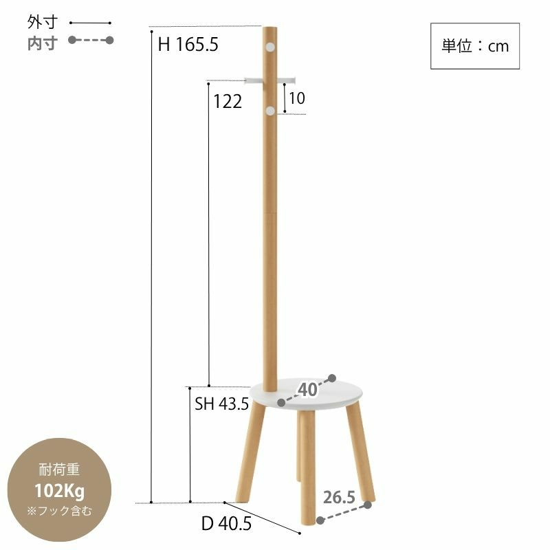 素材 〔座面〕MDF(中質繊維版) 、〔柱・脚〕天然木 〔フック〕スチール