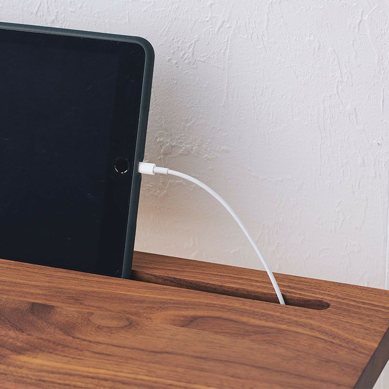 溝には配線穴もある細やかな作り!コンパクトだからこそスッキリ使えるように工夫されています。