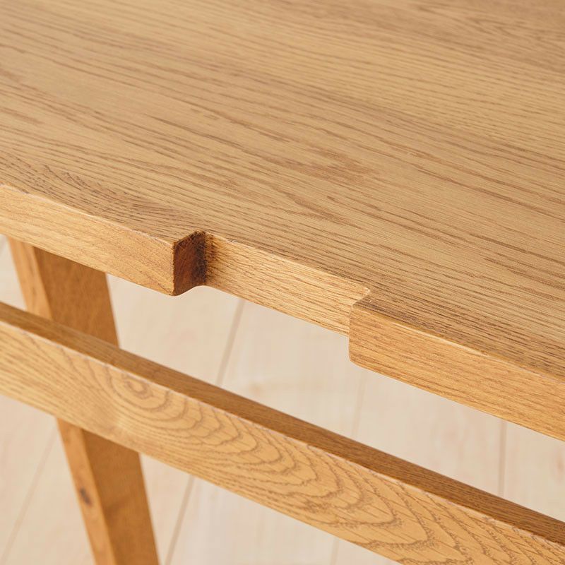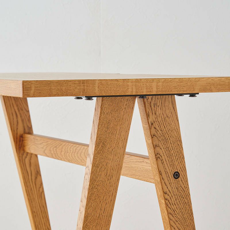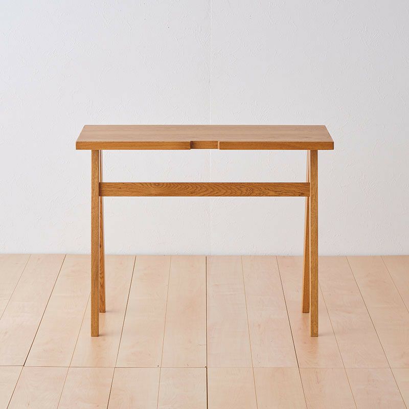 ナチュラルな色合いの木目と、逆V字に組まれた脚が特徴の「F.O.デスク」です。ダブルデイオリジナルです。