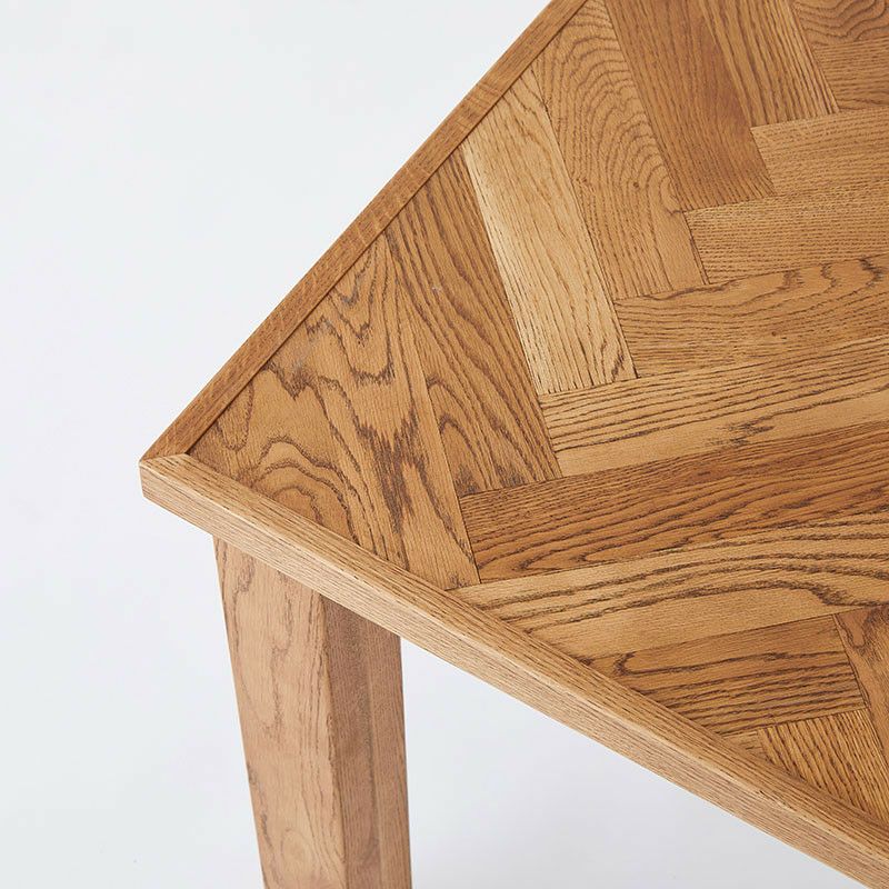 NANCYは、天然木をふんだんに使った優しい印象のテーブルです。 極力シンプルなデザインにすることで天板のヘリンボーンを際立たせています。天然木で組み合わせたヘリンボーン柄の家具は特別なものとしてインテリアを引き立てます。
