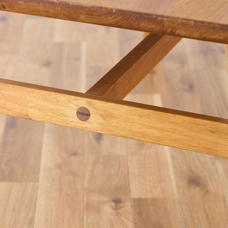 MINOは強度を増すために「くさび」を用いた「割りくさびほぞ」という工法も用いています。くさびにはブラックウォールナットを使用しています。 ブラックウォールナットは「ほぞ」の強度を増すと同時に、デザイン上のワンポイントにもなっています。