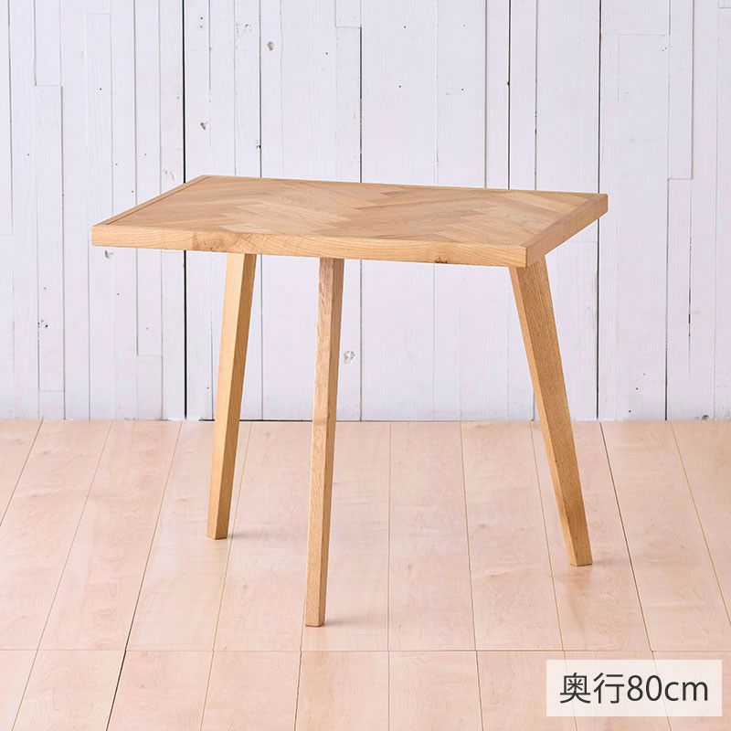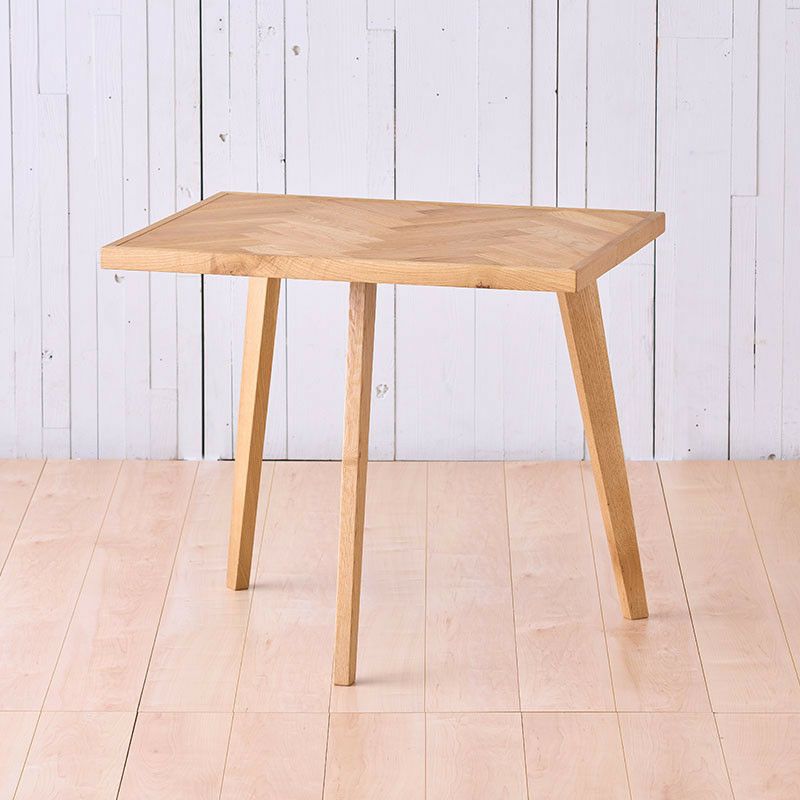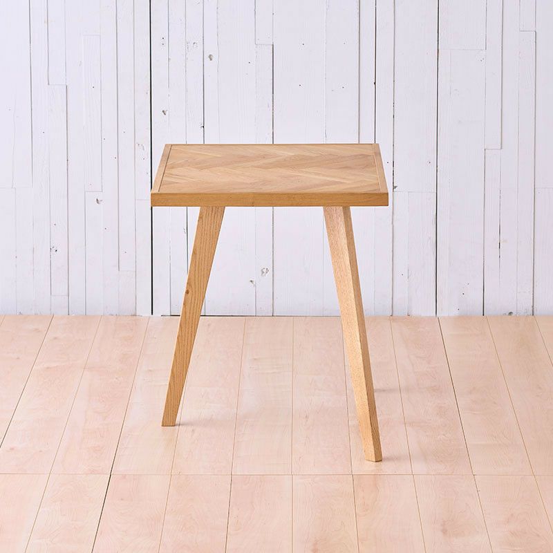 ふんだんに天然木を使った優しい印象があるNANCY。極力シンプルなデザインにすることで天板のヘリンボーンを際立たせています。天然木で組み合わせたヘリンボーン柄の家具は特別なものとしてインテリアを引き立てます。