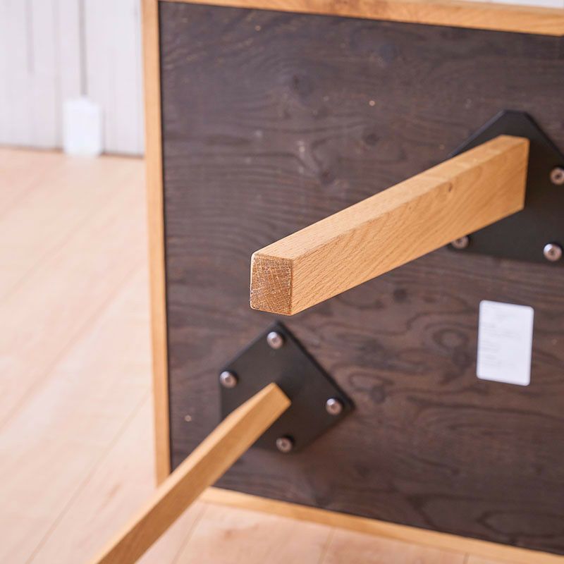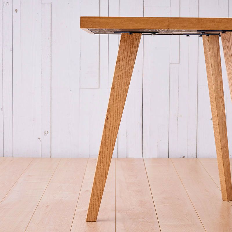 天板には北海道産のナラ材を使用しています。木目が細かく、美しい木目が特徴で、近年は入手困難になりつつある希少素材です。 経年変化を楽しめるのも大きな魅力です。使いこむほどに味わい深くなる天板は、メンテナンスを繰り返すことによってお客さまだけの1枚に仕上がります。