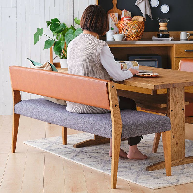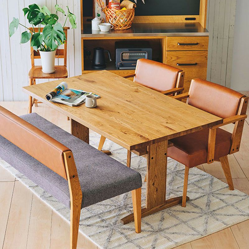 ▼ダイニングテーブル(幅150cm)、ベンチ(片肘)、ベンチ(肘無し)(ベンチをL字にレイアウト)