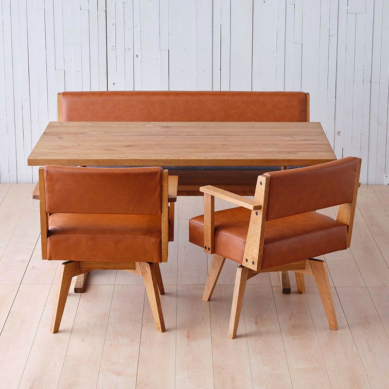 同じシリーズの回転チェアや肘無しベンチとセットでお使いいただくのがおススメです。組み合わせ方によって何通りものレイアウトが楽しめるので、使う場所に合わせて必要な家具をお選びいただけます。