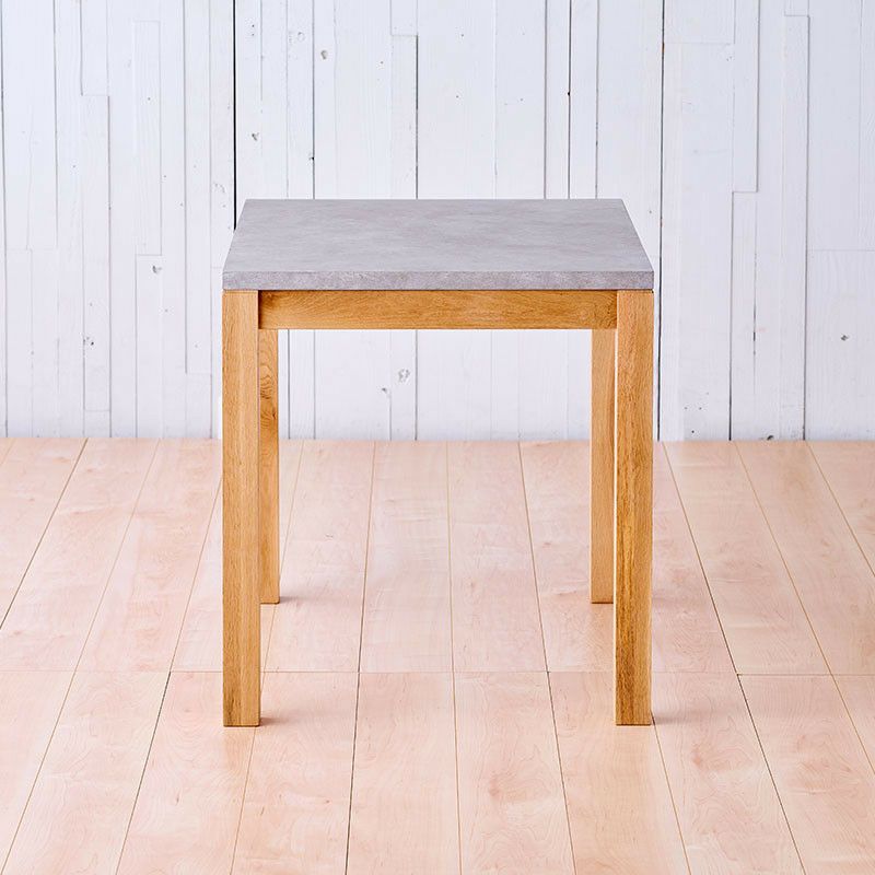 天板を引き立たせるため、デザインはあくまでもシンプルに仕上げてありますが、素材にはもちろんこだわっています。脚にはオーク無垢材を使用し、オイル仕上げになっています。無機質なモルタルカラーと、唯一無二の木目が美しいオーク無垢材の異素材ミックスは、モダンテイストにもナチュラルテイストにもしっくり馴染みます。