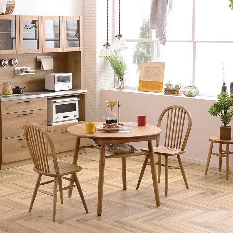 バーチ材を使用した円形ダイニングテーブル「LOGIE (ロジー)」です。丸みがあるデザインとナチュラルな色使いが優しい雰囲気のダイニングテーブルです。
