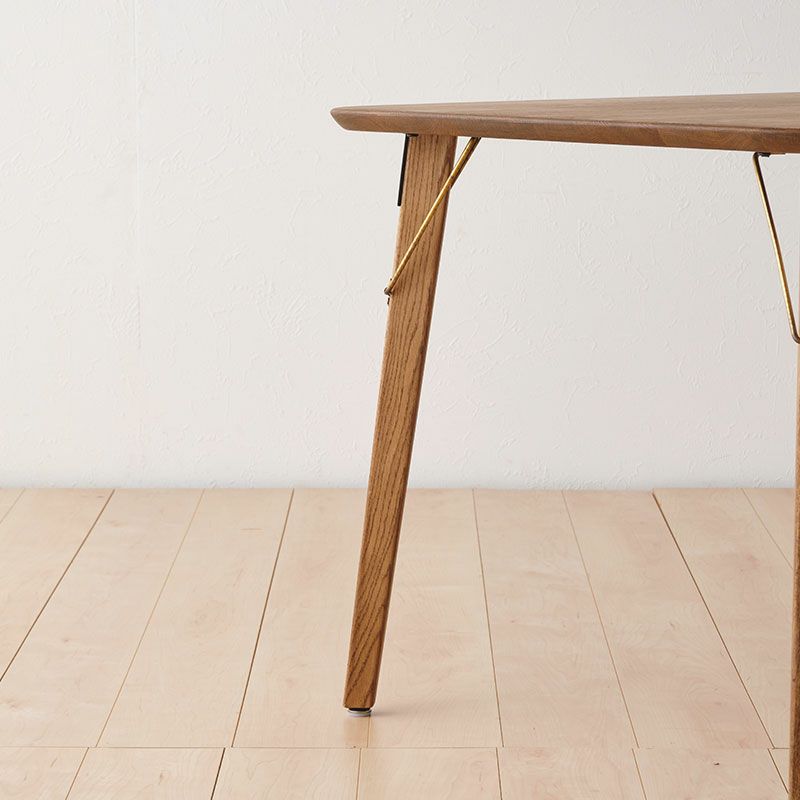 脚は、ウッド×真鍮×スチールの異素材ミックスでデザインされています。丸みのある天板をピリッと引き締めてくれる存在です。