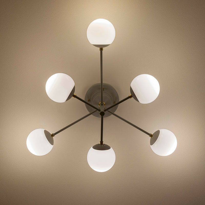 6灯のランプがそれぞれ異なる方向に伸びています。部屋全体を照らしてくれる照明です。