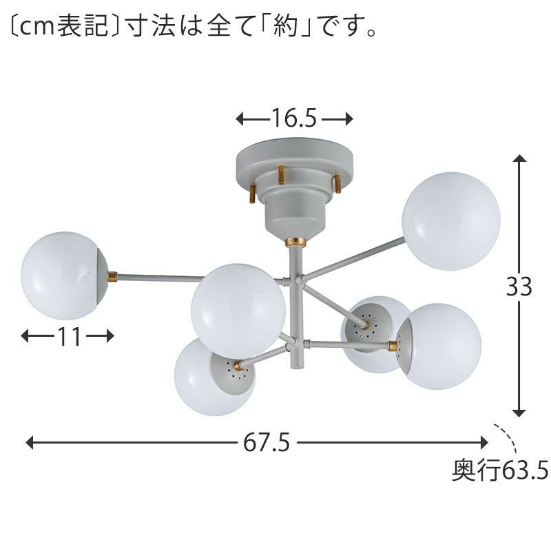 本体からアームが6本配されています。アームは細めのものを採用、取り付け位置や長さに変化をつけた繊細なデザインが特徴です。