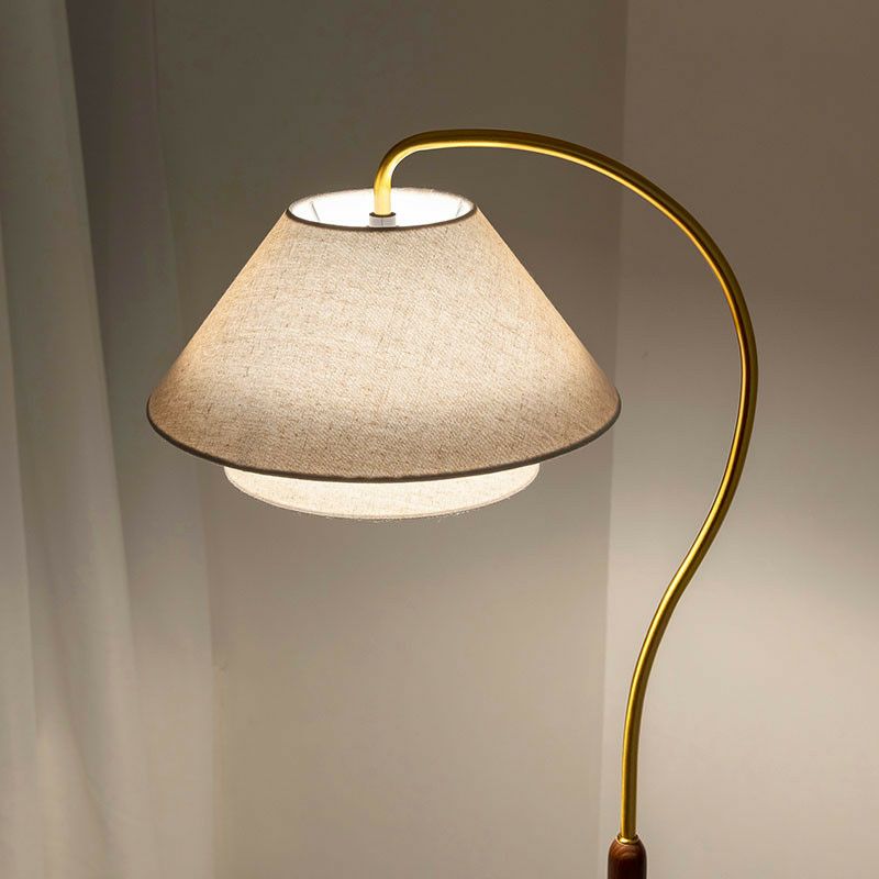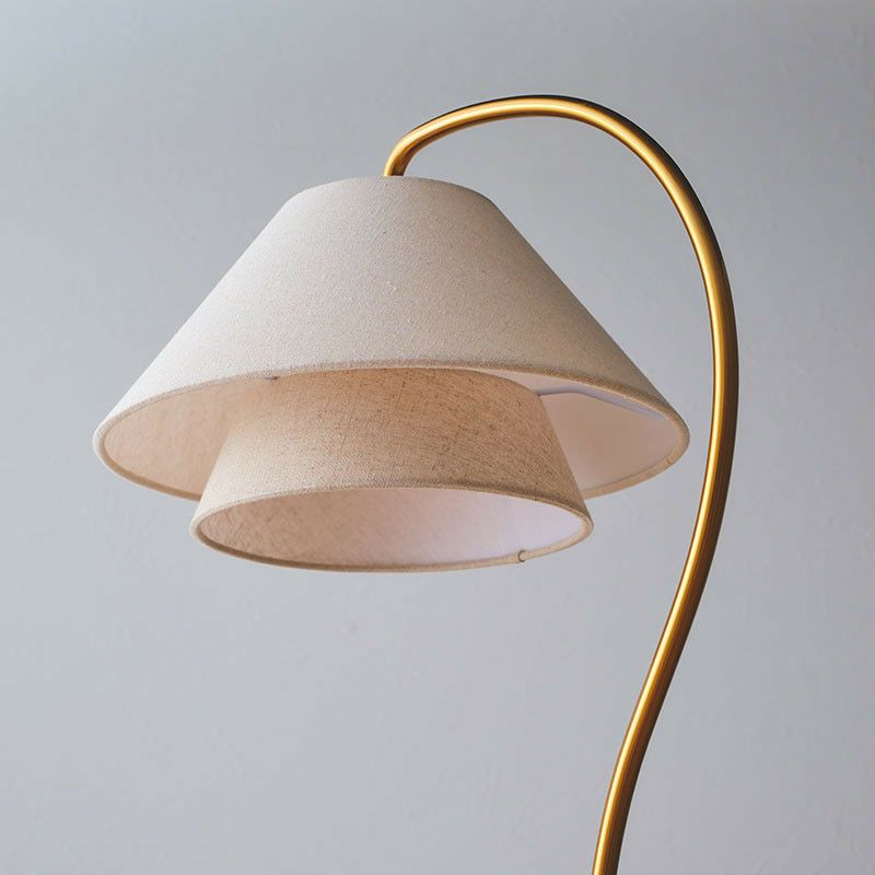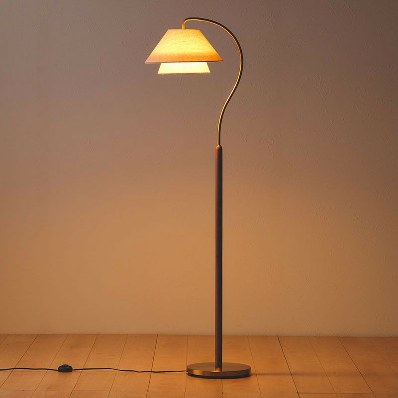 緩やかな弧を描く支柱と、円錐形のファブリックシェードがエレガントな雰囲気を醸しだすフロアランプ「Nelke(ネルケ)」です。