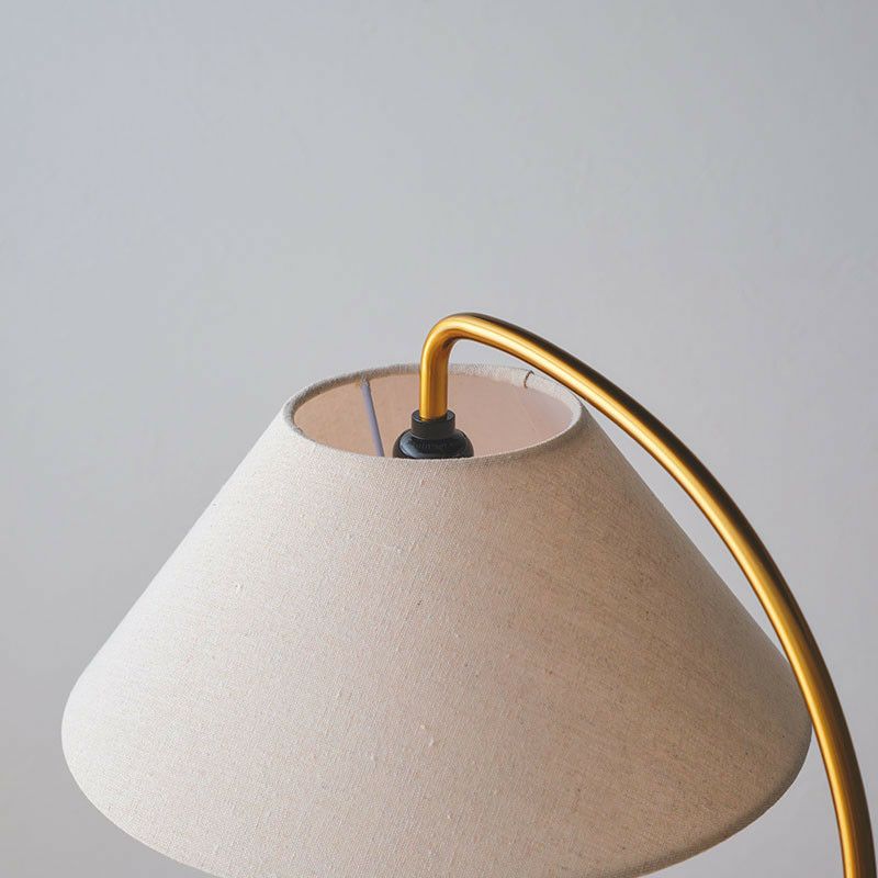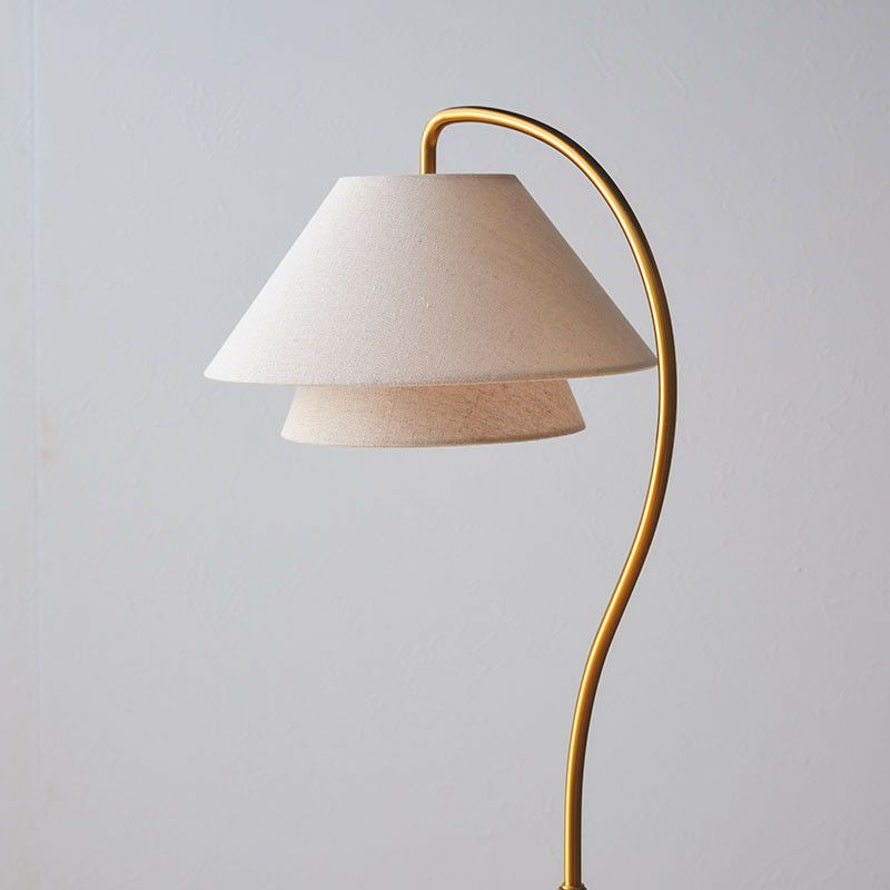 ファブリックシェード、ウッド素材の支柱、ゴールドパーツの組み合わせはエレガントさの中にナチュラルな優しさを感じることができます。北欧テイストやワントーンのインテリアでも上品なアクセントとしてお使いいただけます。