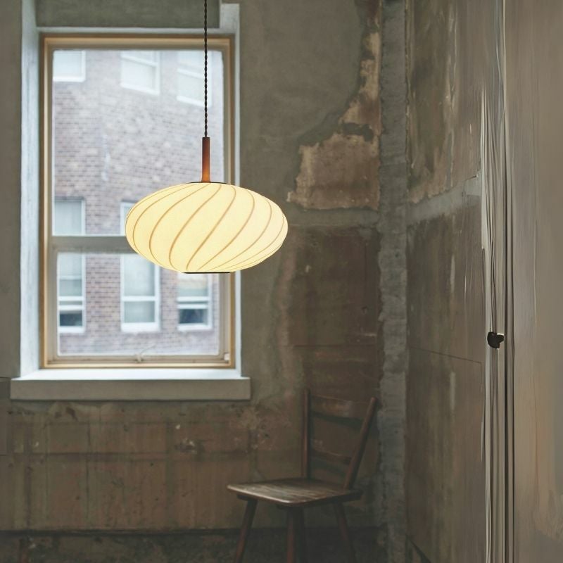 和紙にも似た弾力のある生地でできたシェードが特徴のペンダントランプ「Falk_ellipse(ファルクエリプス)」です。