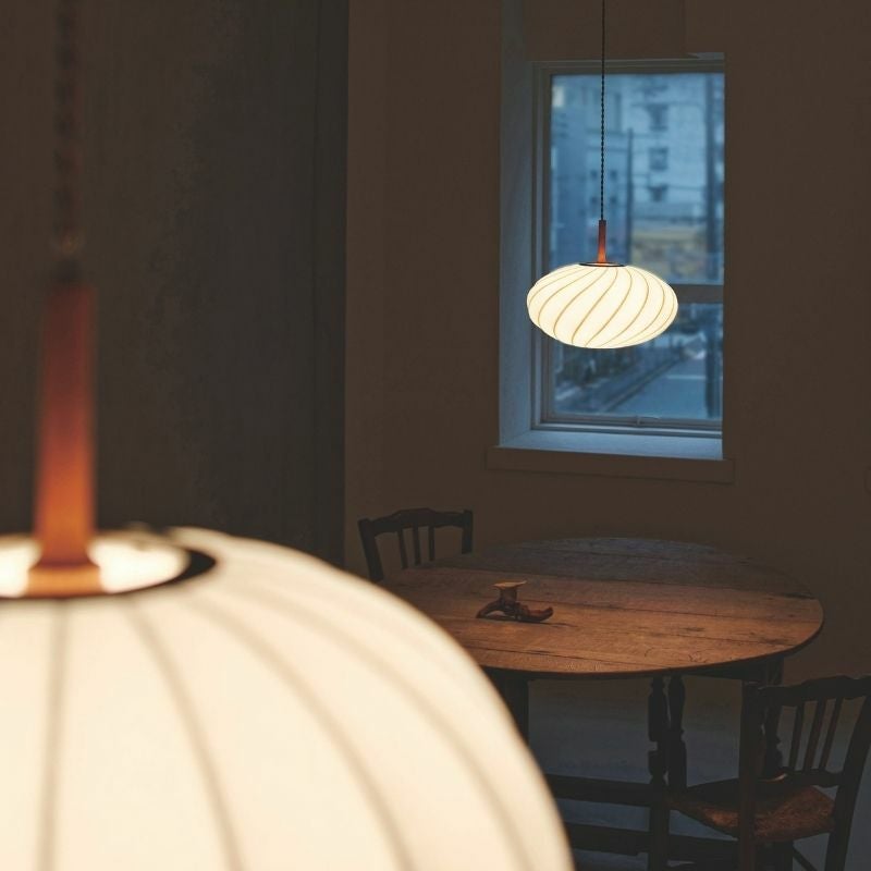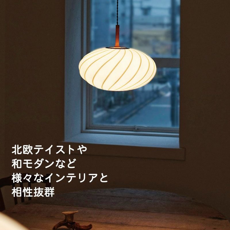 シェード全体が柔らかく光る様子はリビングやダイニングでジャパンディな空間を作ったり、 和モダンなインテリアにもおすすめです。ウッドパーツとツイストコードがより上質な雰囲気を醸し出しています。