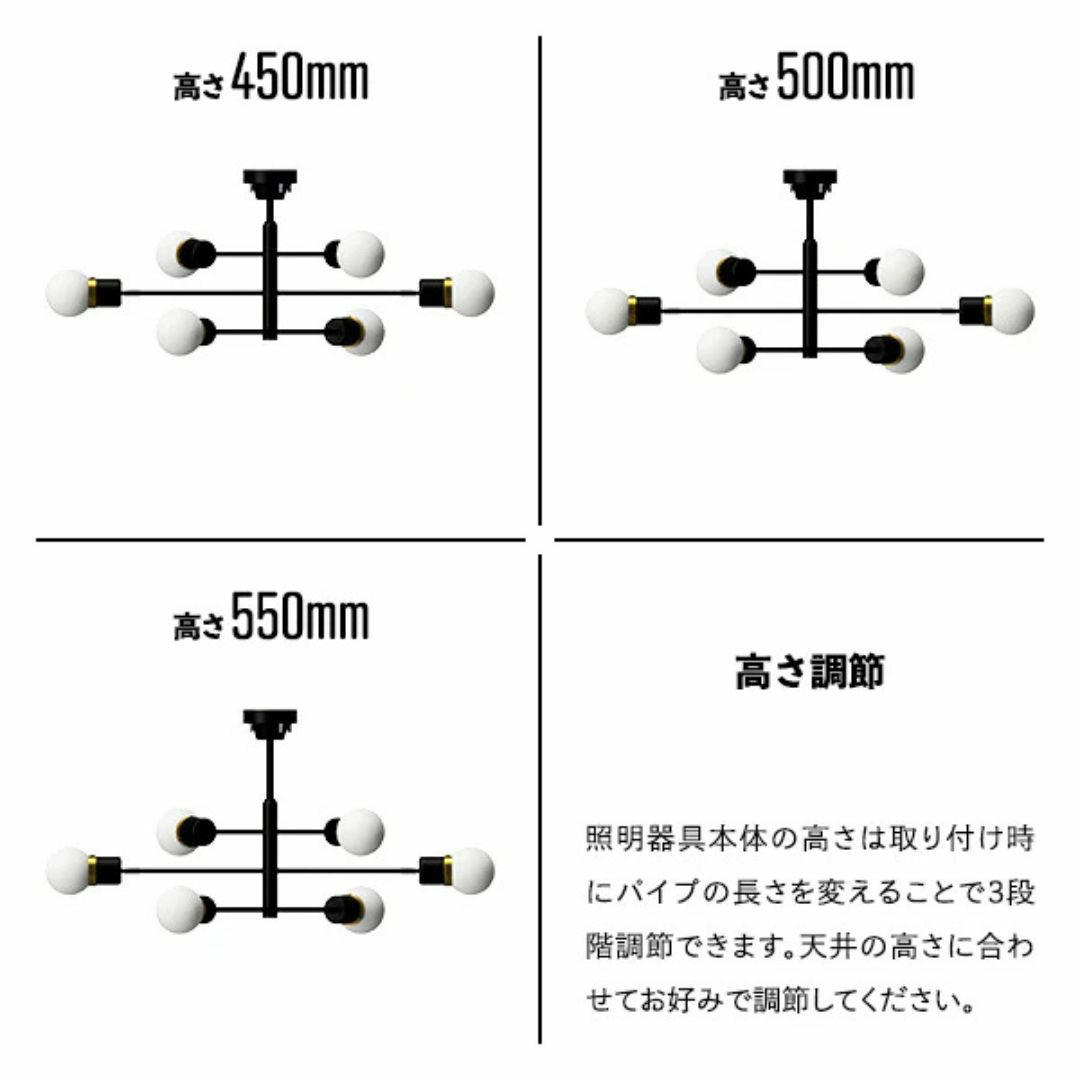 照明の高さは3段階から選べるパイプが付属しています。天井の高さやインテリアのイメージに合わせて調節できます。