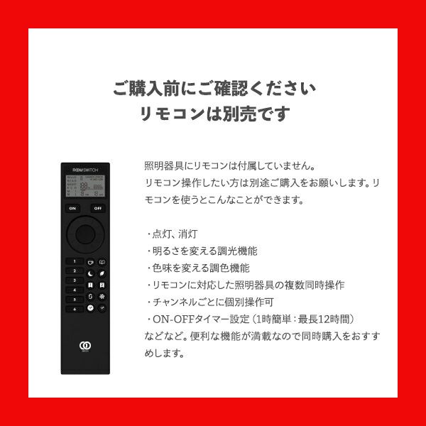 ※リモコンは別売りです。リモコンをご希望の場合は「リモコン有」を選択してください