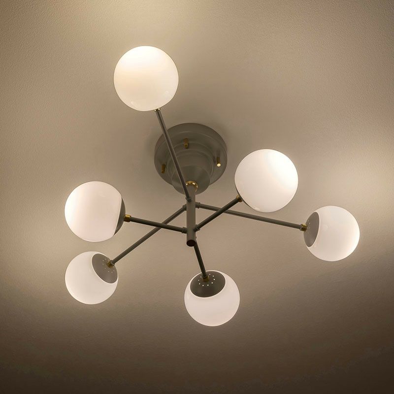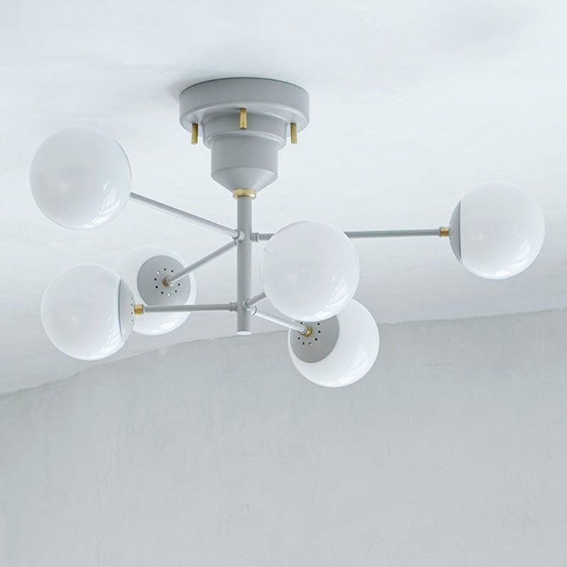 6灯のランプがそれぞれ異なる方向に伸びています。部屋全体を照らしてくれる照明です。