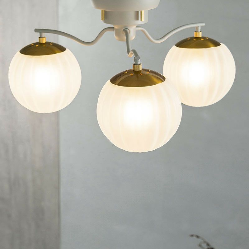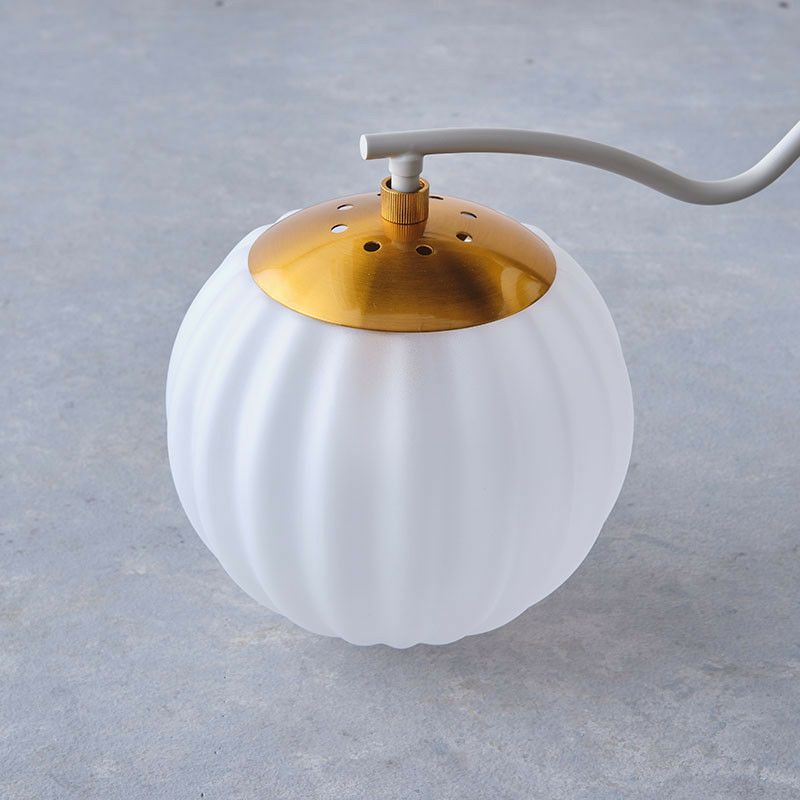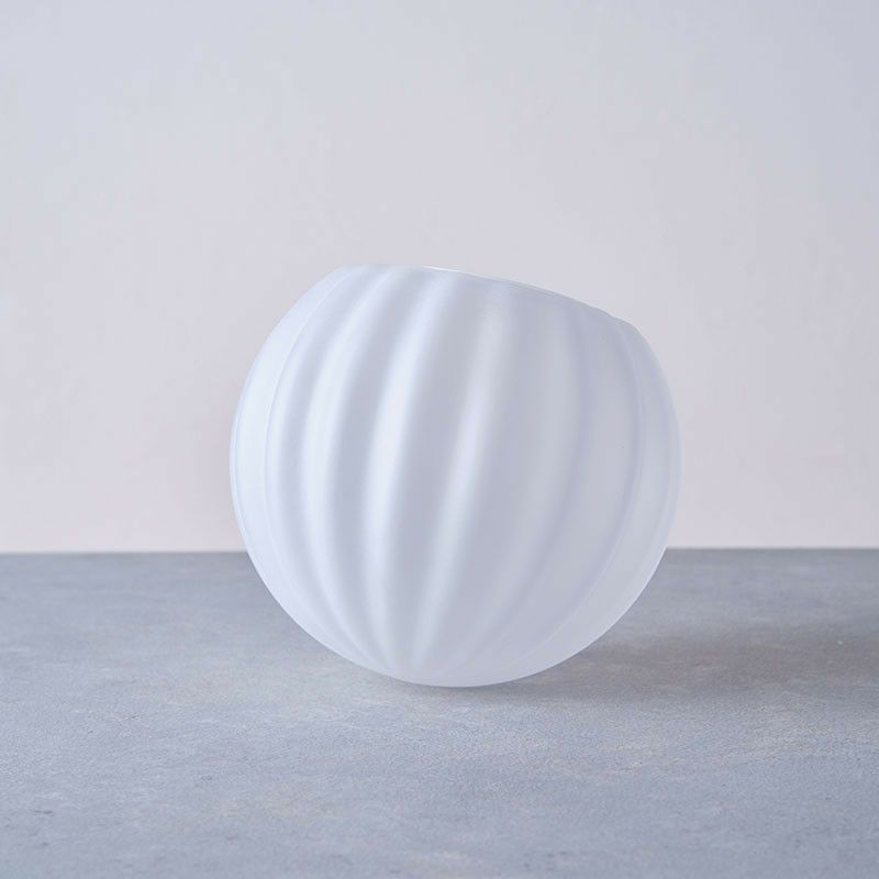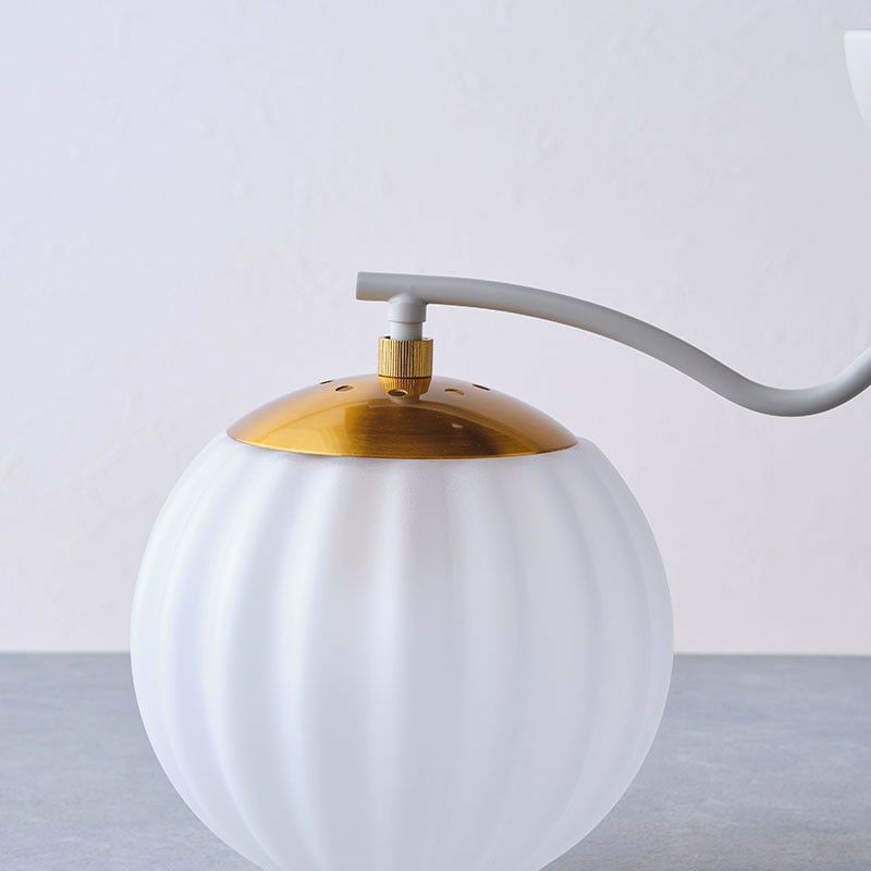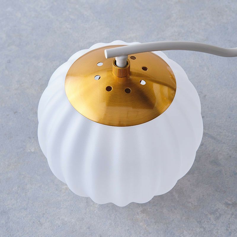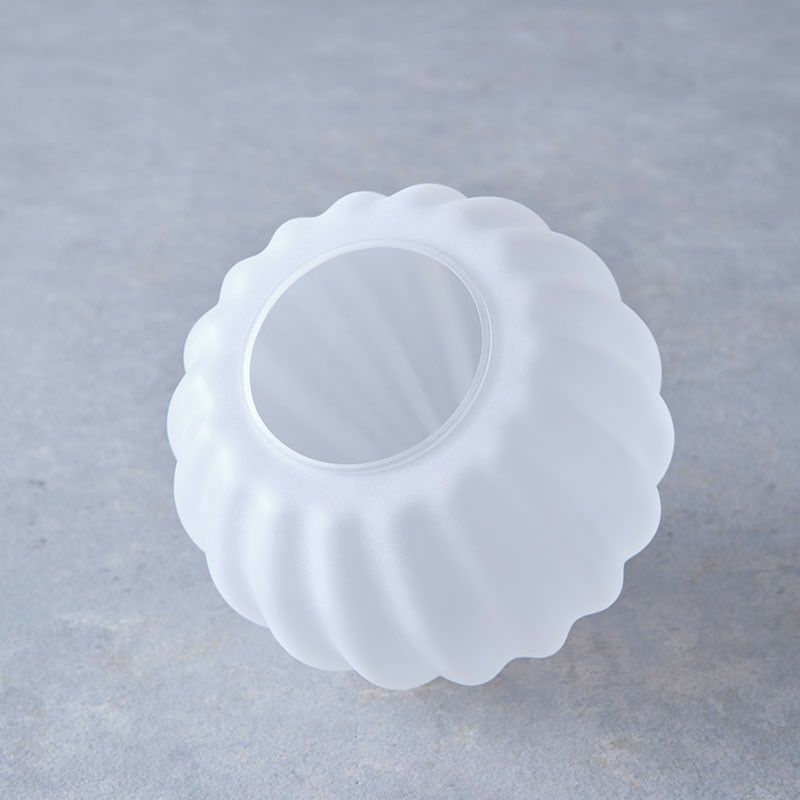 エレガントな印象を与えるガラスシェードは、ハンドメイドで作られています。丸みを持たせたシルエットに連続した凹凸を入れた繊細なフォルムによって、上品でやわらかな陰影を生み出しています。