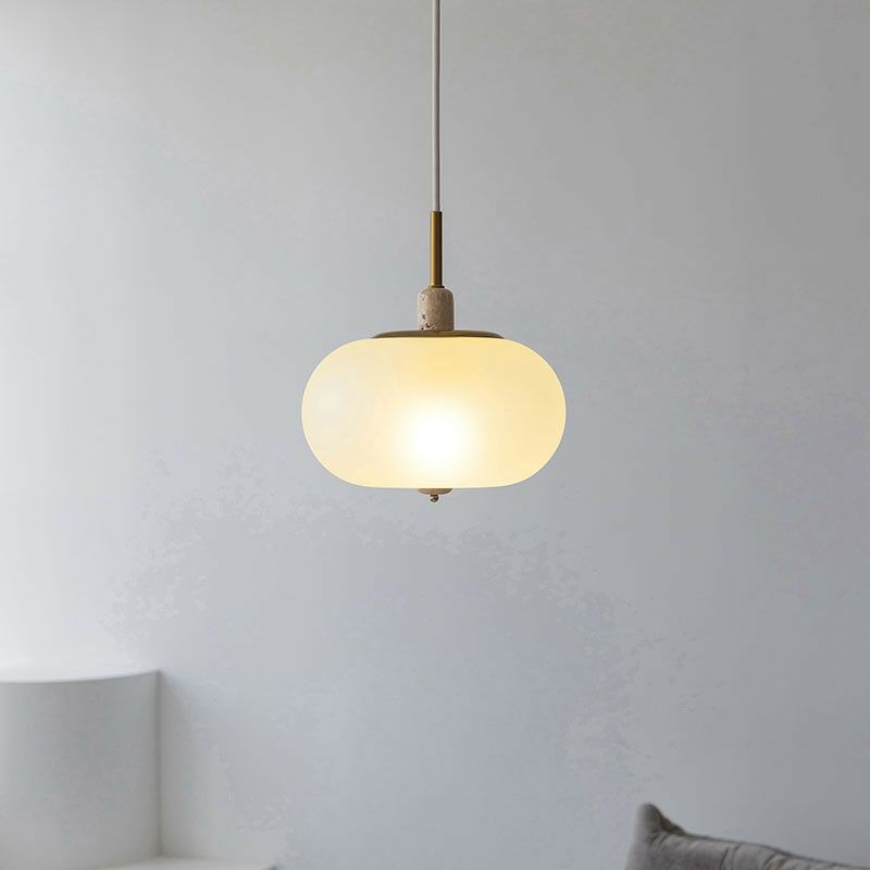 有機的な曲線によってデザインされたオーバル形状が特徴です。半透明のフロストガラスから、上品でやわらかな灯りが広がります。
