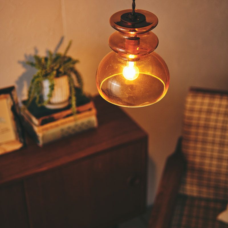 ガラスシェードはハンドメイドです。完全なシンメトリーではない、 ハンドメイドならではのゆらぎ感を楽しめます。
