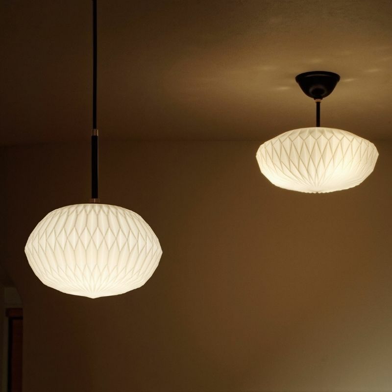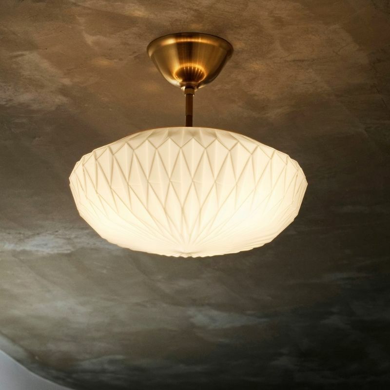折り紙のような幾何学模様のホワイトガラスシェードが印象的なシーリングランプ「Olin(オリーン)」です。支柱の色が2色から選べます。