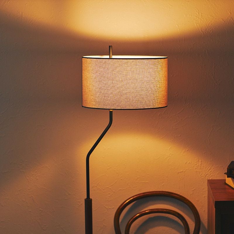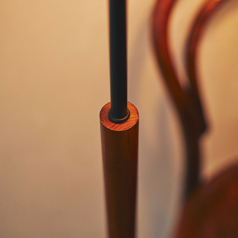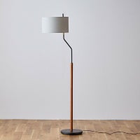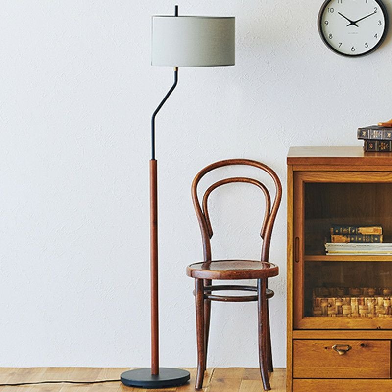 オーソドックスな佇まいながら、角度をつけたアームやスチール素材とナチュラルな素材の組み合わせが スタイリッシュな印象のフロアランプです。北欧テイストのインテリアにもコーディネートしやすく、 日中ランプを点灯しなくてもインテリアオブジェとして活躍します。