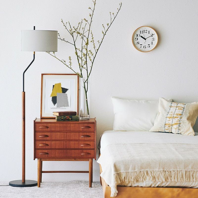 オーセンティックなデザインとファブリックのシェイドからこぼれる柔らかな光に一目惚れしました。フロアランプといってもデザインや形はたくさんありますが、このランプはアームを軸にシェードの向きを変えられるのが嬉しいポイント。 ソファの上で夜中まで読書を楽しみたい、、、という私の願望を満たしてくれる優秀アイテムなのです。