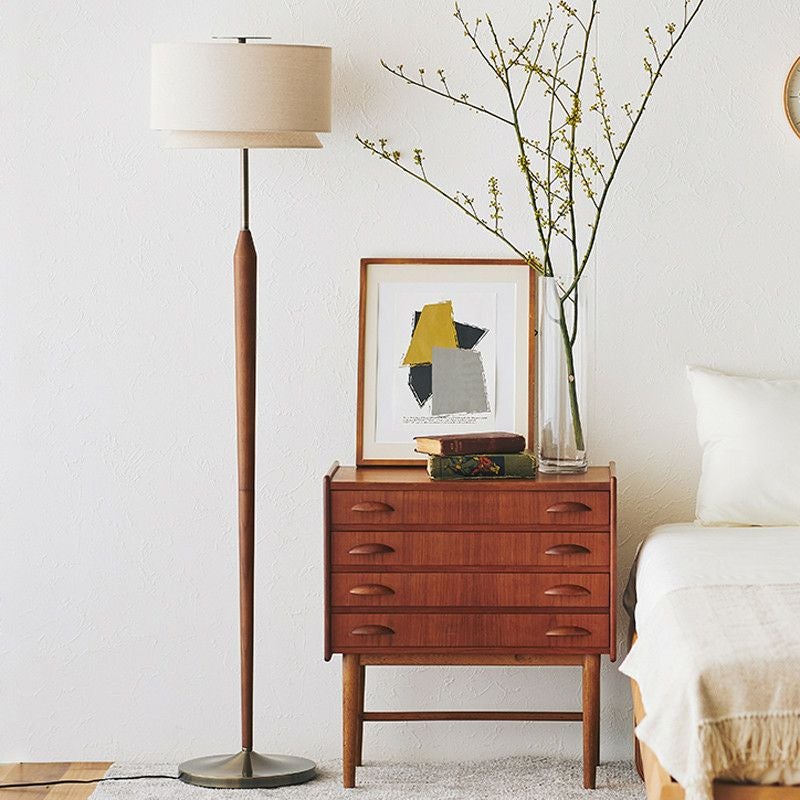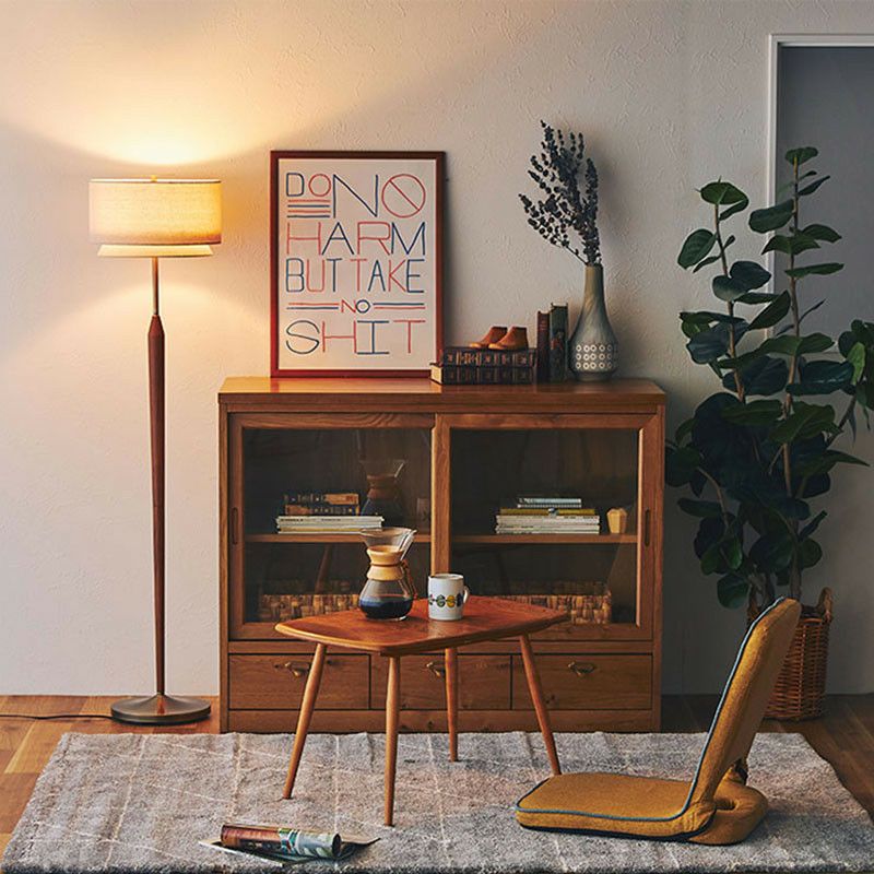 ファブリックシェードに天然木の支柱の組み合わせはあたたかみがあり、優しく上品な雰囲気を持っています。
