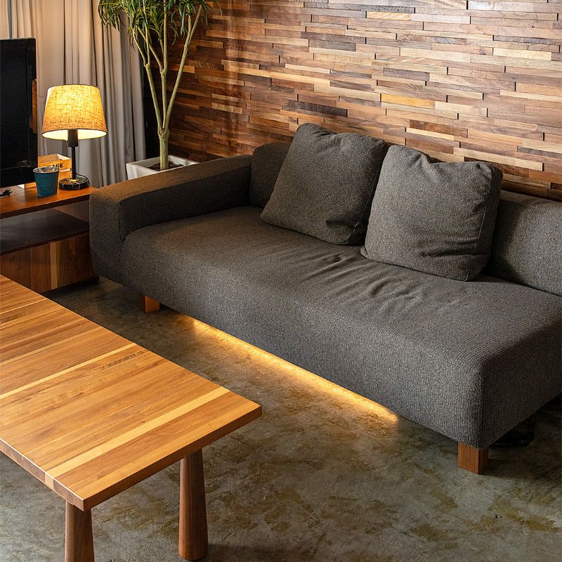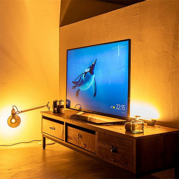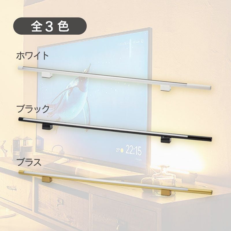 テレビの後ろに設置して、シアターライトにするのもおすすめです。下から上にライトを照らすと空間に立体感が生まれます。 また、テレビの発光面と明度差が低くなり画面が見やすくなると言われています。