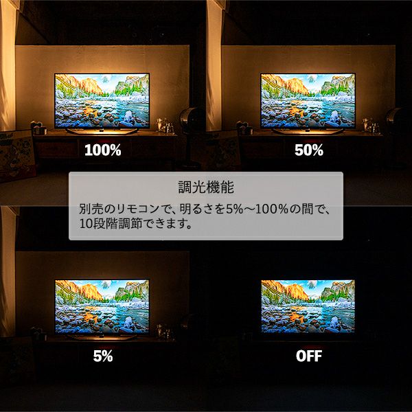 ▼調光・調色機能 リモコンのダイヤルを回すことで明るさと色温度の調節ができます。 明るさは5%~100%の間で10段階、色温度は2,800ケルビンから6,500ケルビンまで10段階調節が可能です。