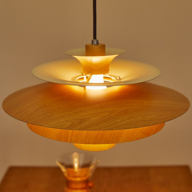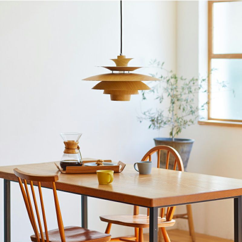 6つのシェードを重ねたデザインにより、光源を覆い隠しながら隙間から静かに広がる独特の灯りが、おだやかな空間を演出してくれます。北欧テイストただようアットホームな雰囲気が、ダイニングやリビングはもちろん、ベッドルームや子供部屋などお気に入りの場所におすすめ。