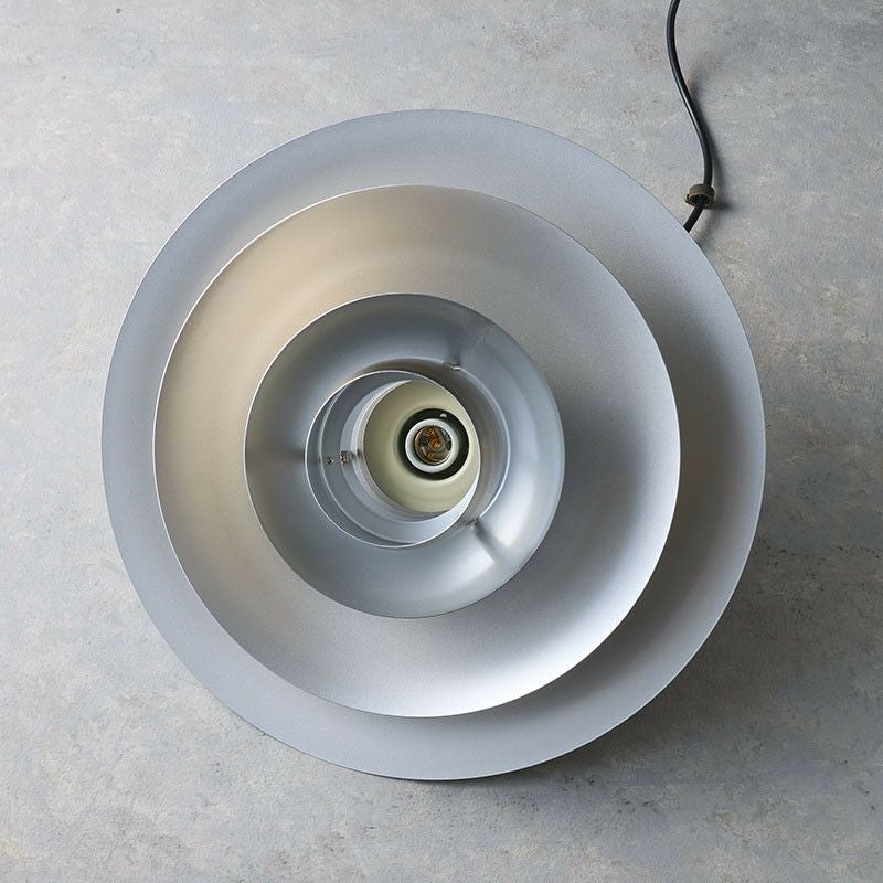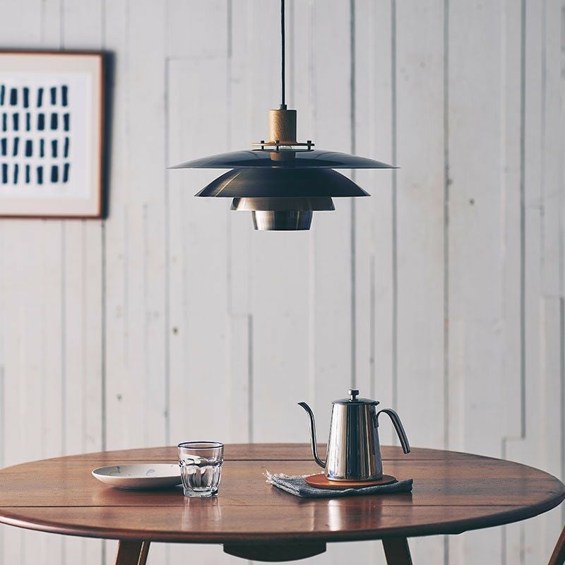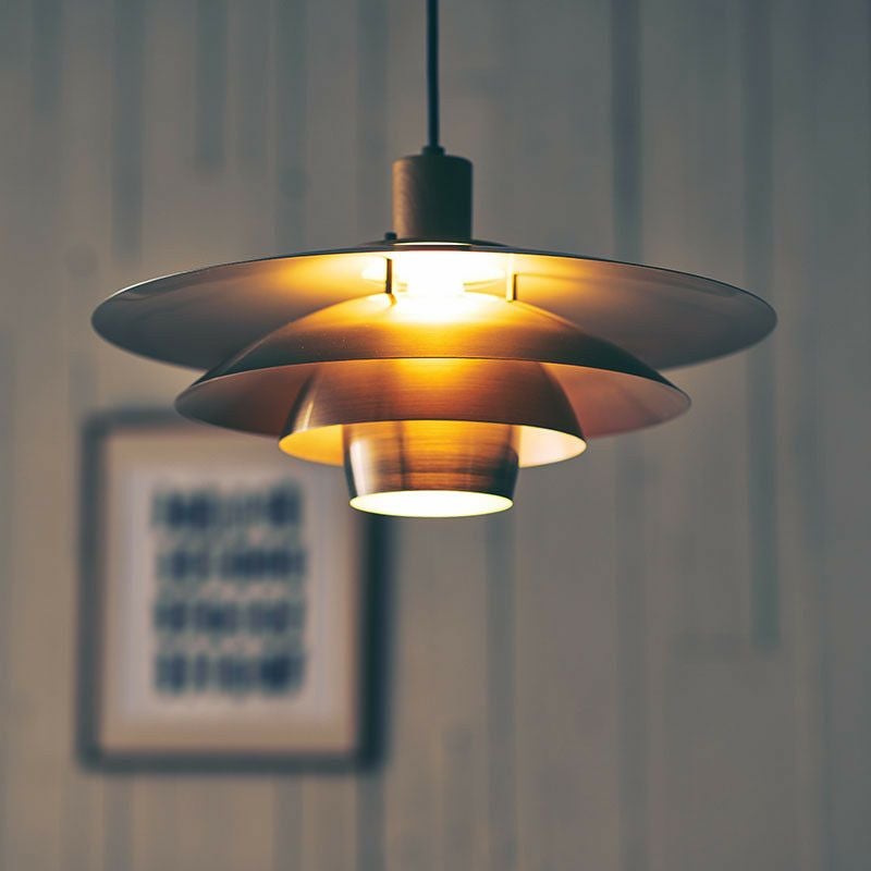 異なる形状の4枚のシェードを重ねて構成したフォルムは立体的な光を生み出します。重ねたシェードが光源を包みこむような役割をし、陰影によってあたたかみのある空間を生み出します。